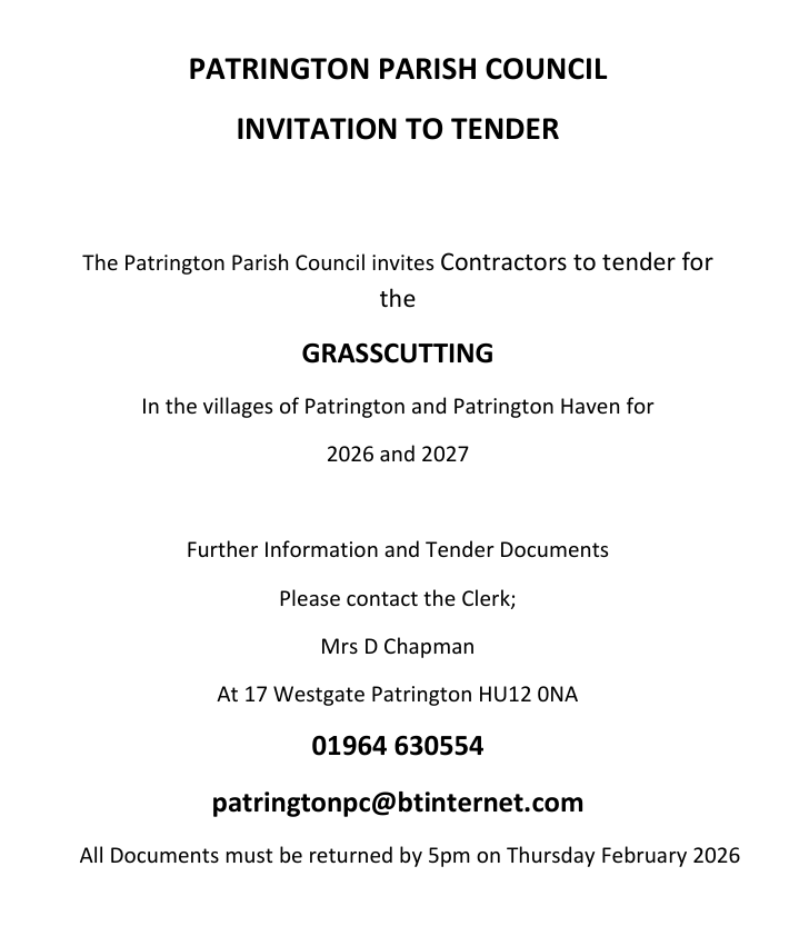 Any member of the public who is a registered elector in the Parish of Patrington may submit one or more nominations to the Parish Council, to be received no later than 31st October 2025.